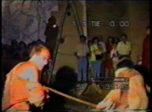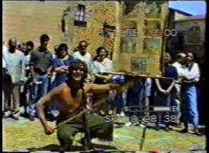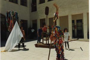 EN 1988, tomamos una decisión trascendental en la historia de la compañía, después de siete, casi ocho años como compañía itinerante, trabajando, ensayando y creando nuestros espectáculos o bien en locales alquilados, o en espacios cedidos, decidimos buscar un espacio para asentarnos. Buscando y buscando, encontramos un espacio de ensueño en la localidad de Aranjuez en Madrid. Una nave a la entrada de la ciudad en el lugar conocido como el Soto del Legamarejo. Acondicionamos el espacio con mucho trabajo y muchas horas, e inauguramos la primera NAVE DE CAMBALEO.