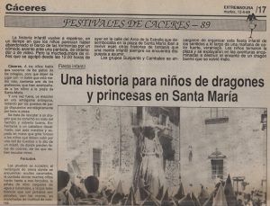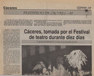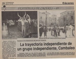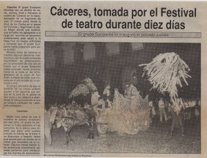 La compañía extremeña Suripanta nos propuso participar en la realización de un Festival Medieval en Cáceres. Un proyecto maravilloso, en el que pudimos aplicar toda la experiencia que habíamos acumulado desde nuestra creación en teatro de calle, y espectáculos especiales. Un trabajo intenso, varios meses de preparación y diseño del proyecto además de un mes y medio viviendo, ensayando y preparando los espectáculos en Cáceres. Preparamos un pasacalles, acciones de calle, y un espectáculo nocturno final en el casco histórico de Cáceres titulado APOTEOSIS.