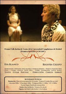 Interpretes: Eva Blanco y Begoña Crespo. Escenografía y Vestuario: Pablo Almeida y Gonzalo Buznego. Técnico: Francisco Ruiz. Vídeo y Diseño Gráfico: David Ruiz. Diseño Iluminación: Carlos Sarrió. Producción: Antonio Sarrió. Texto: Itziar Pascual. Dirección: Carlos Sarrió.