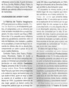 Texto: SUZANNE LEBEAU. Dirección: CARLOS SARRIÓ. Interpretes: BEGOÑA CRESPO. EVA BLANCO. ANTONIO SARRIÓ. JULIO C. GARCÍA. CARLOS SARRIÓ. Técnico:. FRANCISCO RUIZ. Espacio Escénico:. PABLO ALMEIDA Y GONZALO BUZNEGO. Música:. MARIANO LOZANO-P