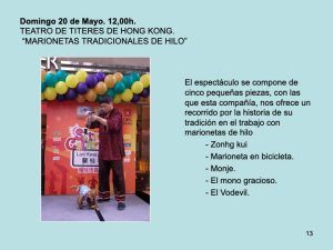 Es destacable la colaboración con el Festival Titirimundi que se celebra en Mayo en Segovia, organizado por Julio Michel de la compañía Libélula, y que ha permitido incluir en la Programación a la compañía Vita Marcika de la Republica Checa, Rod Burnett del Reino Unido, Aakaar Puppet de la India, y Teatro de títeres de Hong Kong que clausura la Muestra