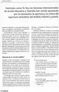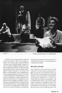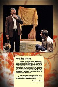 Nuestro interés por “Salvador. El niño, la montaña y el mango”, se remonta al año 2002, cuando tuvimos la oportunidad de hacer una lectura dramatizada en la edición de Teatralia de ese año. Desde ese momento, quedó claro para nosotros, que teníamos que estrenar ese espectáculo en España.