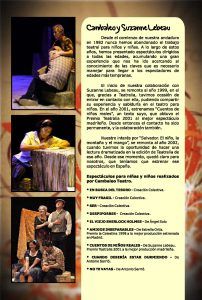 El inicio de nuestra colaboración con Suzanne Lebeau, se remonta al año 1999, en el que, gracias a Teatralia, tuvimos ocasión de entrar en contacto con ella, pudiendo compartir su experiencia y sabiduría en el teatro para niños, participando en un curso que impartió sobre escritura teatral para la infancia. Se puede decir que el flechazo fue inmediato, y en el año 2001, estrenamos “Cuentos de niños reales”, un texto suyo, que obtuvo el Premio Teatralia 2001 al mejor espectáculo madrileño. Desde entonces el contacto ha sido permanente, y la colaboración también.