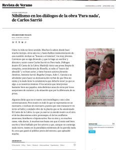 PROGRAMA  DE MANO Y PRENSA PARA NADA. DIÁLOGOS