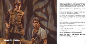 En Septiembre de 2017 Cambaleo Teatro estrena “Solo sucede lo que puede suceder”. El espectáculo parte de una propuesta textual de Carlos Sarrió del mismo título. Parte también de una propuesta de dramaturgia: “Ante el páramo que nos propone el sistema socio-económico en que vivimos (antes llamado capitalismo), proponemos ocuparlo y llenarlo de poesía, de vida, de lucha interna, de crítica y desprecio ante lo que vemos. Ocupamos sin pudor ese espacio y desde ahí luchamos por recuperar la dignidad como personas. La propuesta escénica habilita un espacio de desahucio que es un montón de muebles como ámbito donde dilucidar cómo decir poesía con nuestra voz y nuestros cuerpos. Habitamos la intemperie. E invitamos a habitarla con nosotros al colectivo El Curro DT, en un intercambio entre nuestros materiales y las aportaciones que ellos realicen ante las preguntas que suscita habitar ese espacio y que tendrá lugar durante el mes de Mayo de 2018. En otro orden de cosas es un intento de mestizaje escénico entre dos colectivos con experiencias muy distintas y un objetivo: dar una respuesta poética y vital a un sistema económico y social que aplasta a los más débiles.