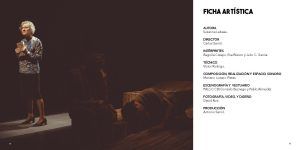 Ficha artística: Autoría: Suzanne Lebeau. Dirección escénica: Carlos Sarrió Lema. Escenografía y vestuario: Palco CB. Música y sonido: Mariano L. Platas. Iluminación: Carlos Sarriá Lema. Intérpretes: Eva Blanco, Julio C. Gracia y Begoña Crespo.